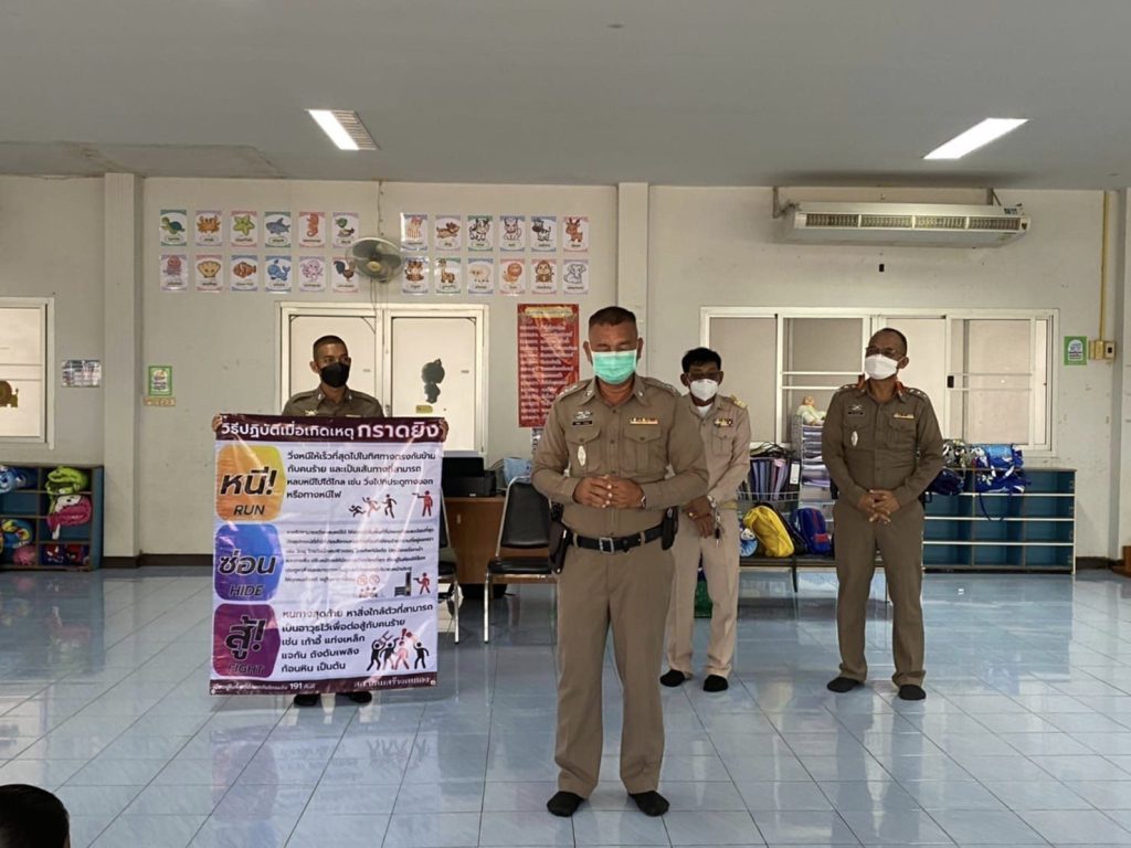 ลงพื้นที่ร่วมซักซ้อม แผนเผชิญเหตุ กรณีวิธีเอาตัวรอดจากเกตุการณ์กราดยิง active Shooter ภายในสถานศึกษา
