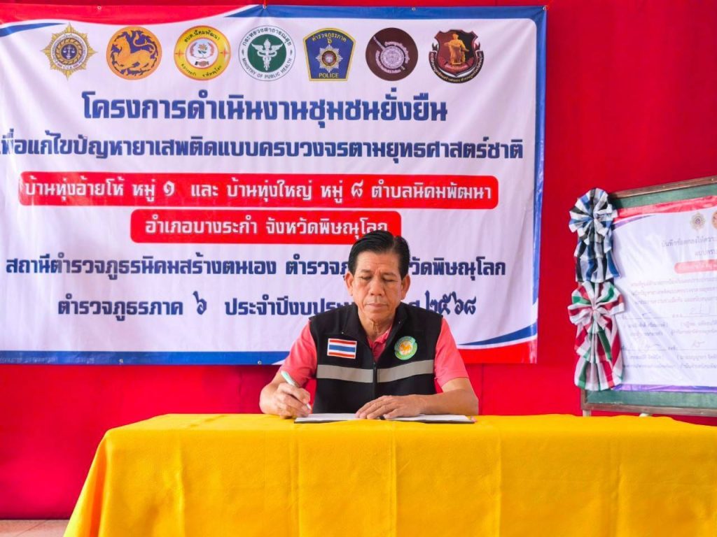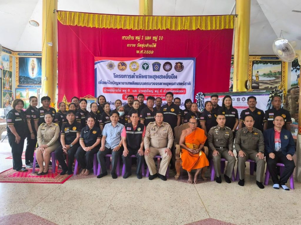 ภายใต้การอำนวยการของ ว่าที่ พ.ต.อ.ปฏิพล มหัทธนวิศิษฎ์ ผู้กำกับการสถานีตำรวจภูธรนิคมสร้างตนเอง ปัญหายาเสพติด เป็นวาระสำคัญของชาติ ต้องได้รับการแก้ไขปัญหาอย่างเร่งด่วน และช่วยเหลือผู้ติดยาเสพติดให้ได้รับการบำบัดรักษา และอยู่ในชุมชนอย่าสงบสุข โดยชุดปฏิบัติการชุมชนยั่งยืน เข้ามาปฏิบัติการในพื้นที่หมู่บ้าน พร้อมบูรณาการร่วมกับภาคีเครือข่ายฝ่ายปกครอง บ้าน วัด โรงเรียน พัฒนาชุมชน องค์การบริหารส่วนตำบล สาธารณสุข ได้ร่วมทำบันทึกข้อตกลง (MOU) ร่วมกันในการแก้ไขปัญหายาเสพติดตามแนวทางของโครงการดังกล่าว โดยมี ว่าที่ พ.ต.อ. ปฏิพล มหัทธนวิศิษฎ์ ผกก.สภ.นิคมฯ พร้อมชุดปฏิบัติการ, นายประเสริฐ เวลาดี รองนายกองค์การบริหารส่วนตำบลนิคมพัฒนา ,เจ้าอาวาสวัดทุ่งอ้ายโห้, ผอ.รร.รัฐราษฎร์สงเคราะห์, ผอ.รพ.สต.นิคมพัฒนา , กำนันตำบลนิคมพัฒนา ผู้ใหญ่บ้านทุ่งอ้ายโห้,ผู้ใหญ่บ้านทุ่งใหญ่ และประชาชนในพื้นที่ เข้าร่วมพิธีเปิด โครงการฯ