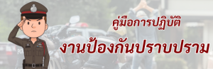คู่มือปฏิบัติงานสำหรับเจ้าหน้าที่ข้อมูลเกี่ยวกับคู่มือหรือมาตรฐานการปฏิบัติงาน ตามภารกิจของแต่ละงาน (งานอำนวยการงานป้องกันปราบปราม งานจราจร งานสืบสวน และงานสอบสวน) พร้อมรายละเอียด (คลิกที่ภาพ)